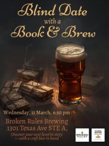 Wednesday, 11 March, 6:30 pm Broken Rules Brewing1301 Texas Ave. Ste A. Discover your Next Favorite Story – with a craft beer in hand.