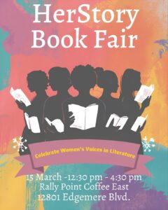 Join us for the Herstory Book Fair at Rally Point Coffee East on March 15th, from 12:30 PM to 4:30 PM. Everyone is welcome, so